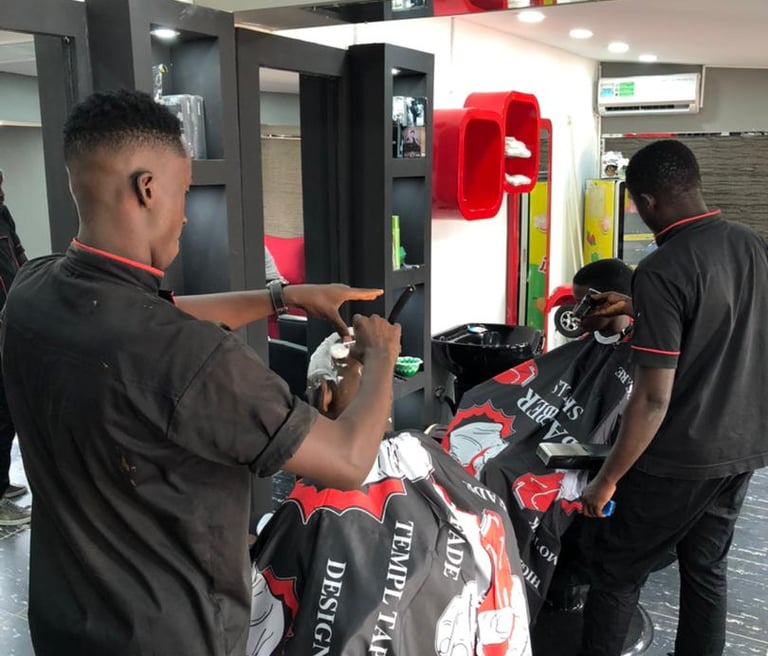 Situé à Kipé, non loin de la pharmacie Afia, notre complexe de coiffure se spécialise dans les coupes pour hommes et enfants. Nous proposons une large gamme de styles allant des coupes classiques aux tendances modernes.